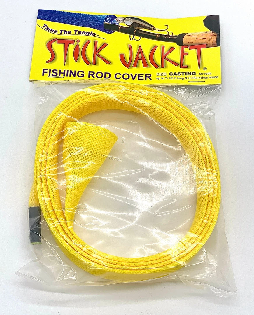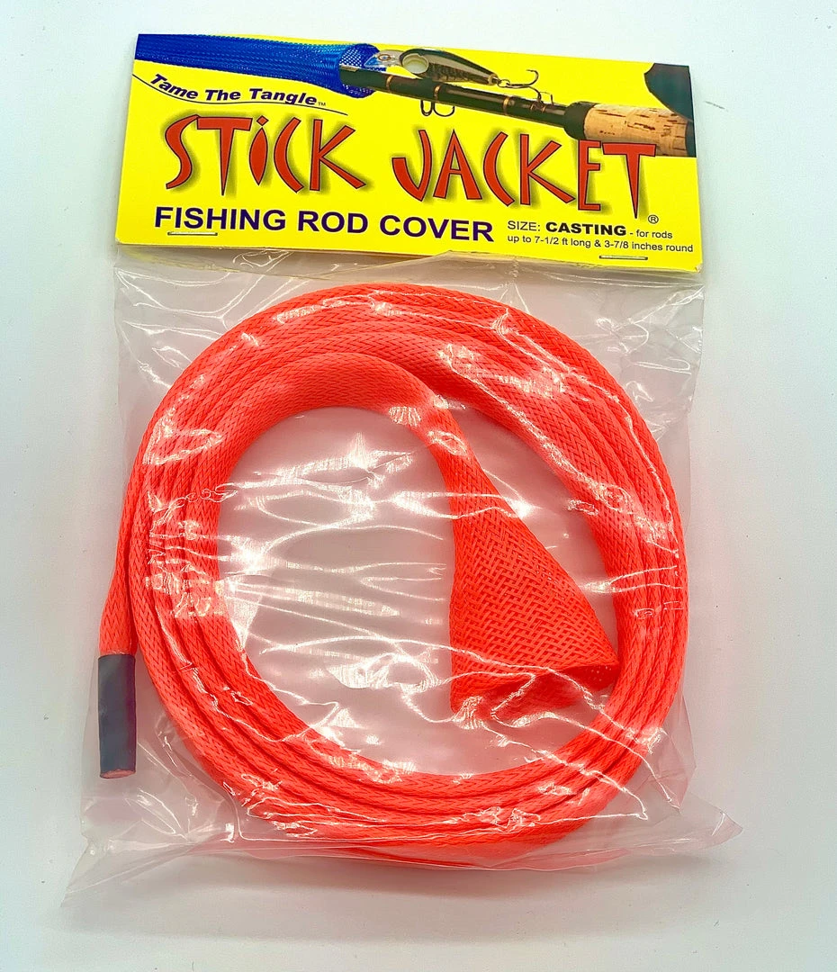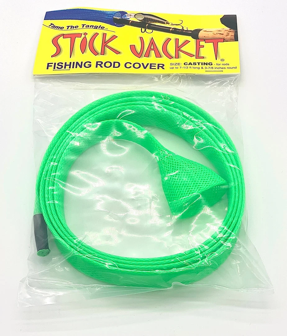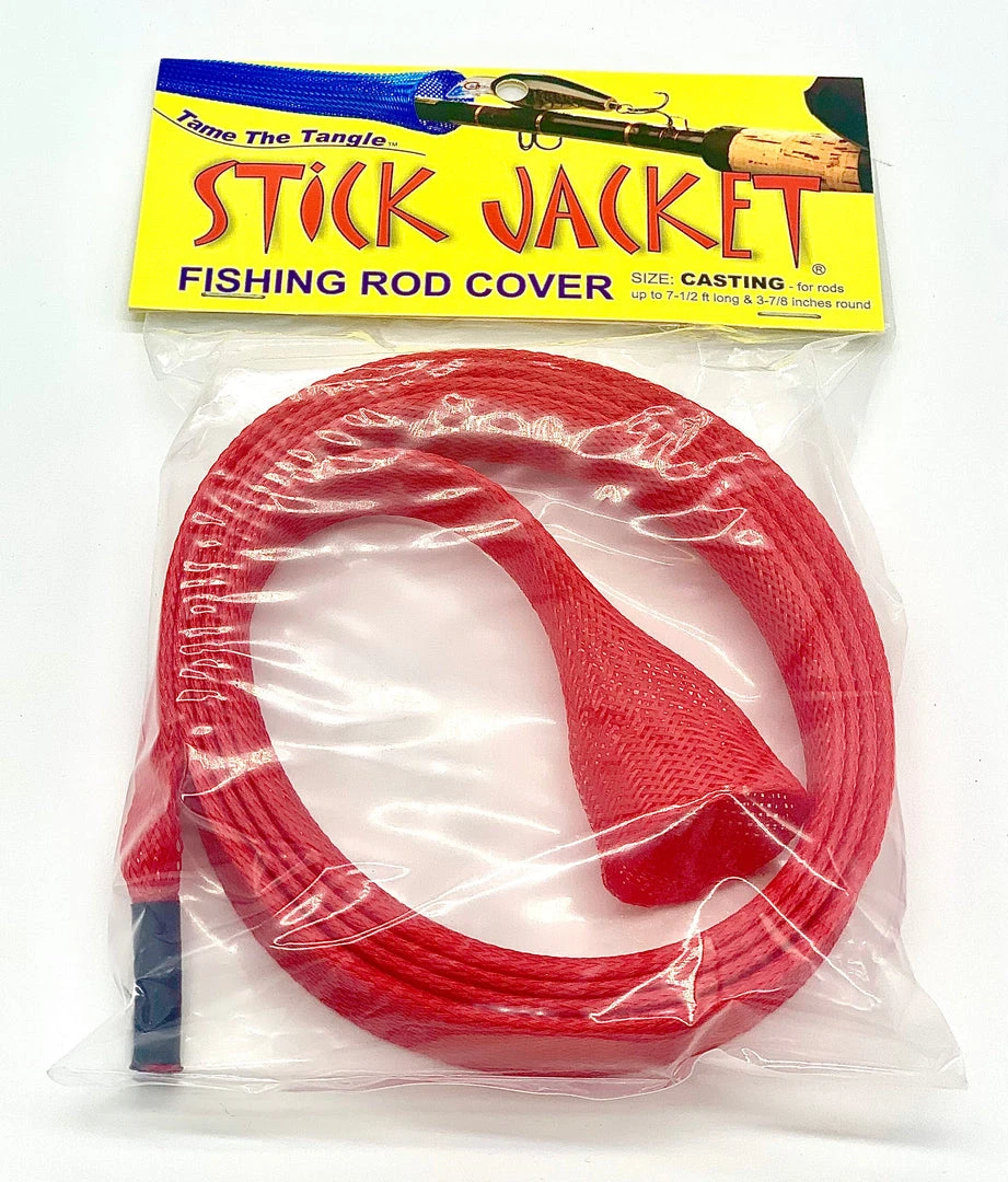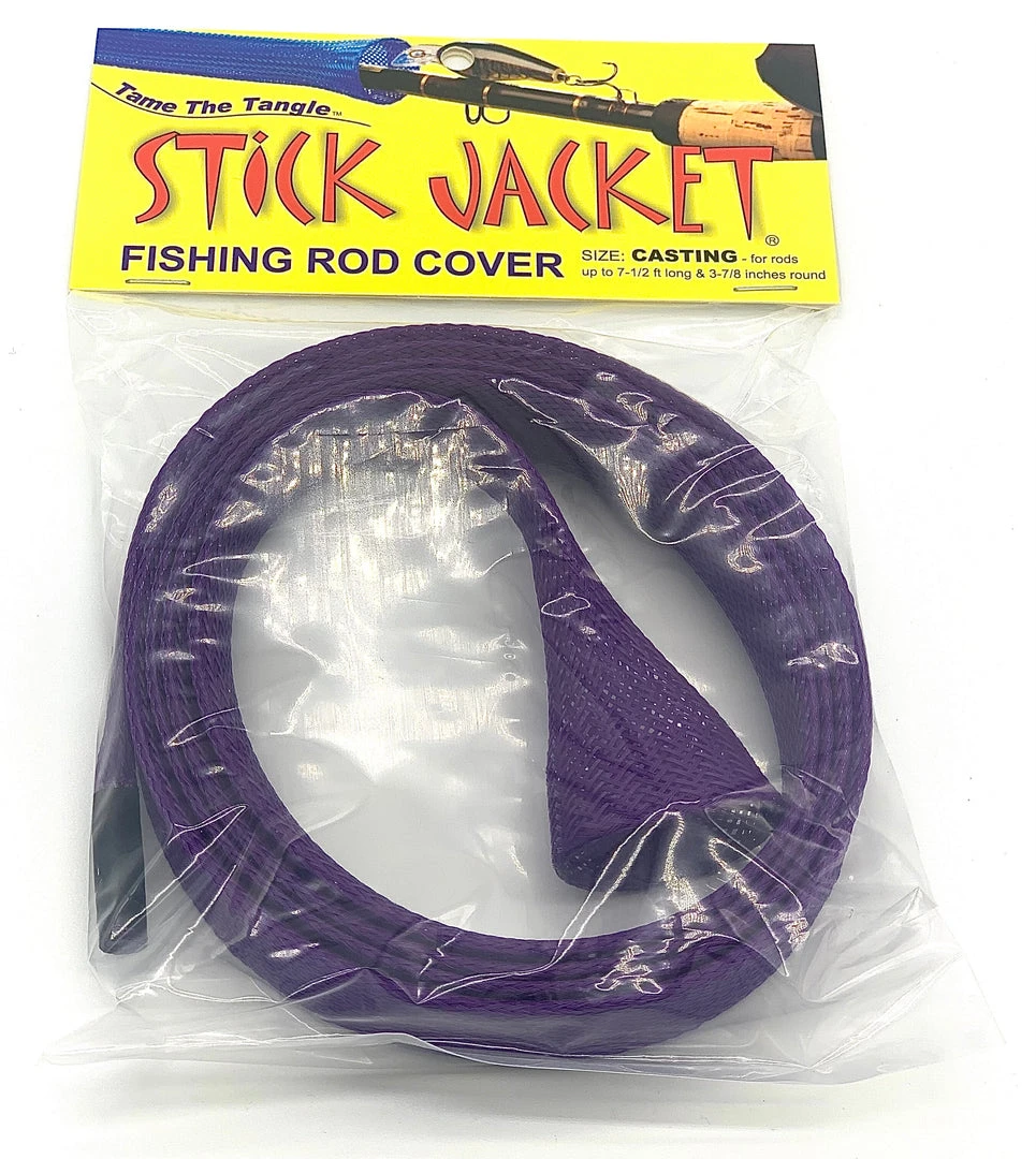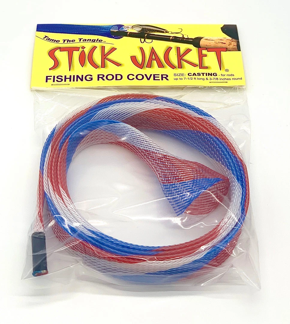 Stick Jacket® fishing rod covers prevent rod tangles and are easy to use. Their unique braided construction and wide expandability means easy on & off installation. They may be used over large line guides on fully rigged rods. Unlike cloth sheaths, barbed hooks are easily removed. Stick Jacket rod covers are great in boat rod lockers, rod storage tubes, in the back of your truck or going to and from the boat.